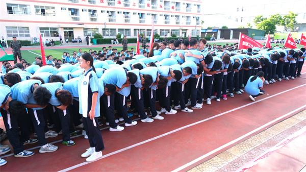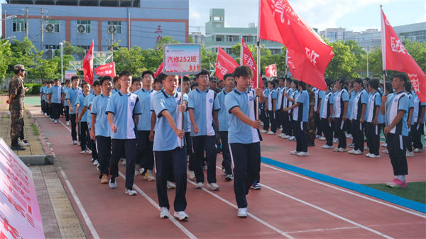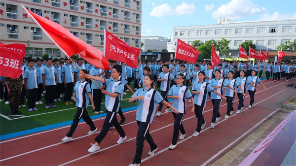 校領(lǐng)導(dǎo)、教官、全體教職工及2025級同學(xué)齊聚訓(xùn)練場