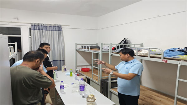 晚上8時(shí)許,學(xué)校領(lǐng)導(dǎo)班子成員、中層干部和各班班主任齊聚學(xué)生公寓樓前。在簡(jiǎn)單布置工作后,老師們分成若干小組,深入各棟宿舍樓,逐一走訪每間新生寢室。