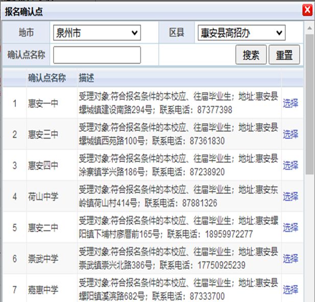 01:報名確認點:惠安縣技術(shù)學(xué)校