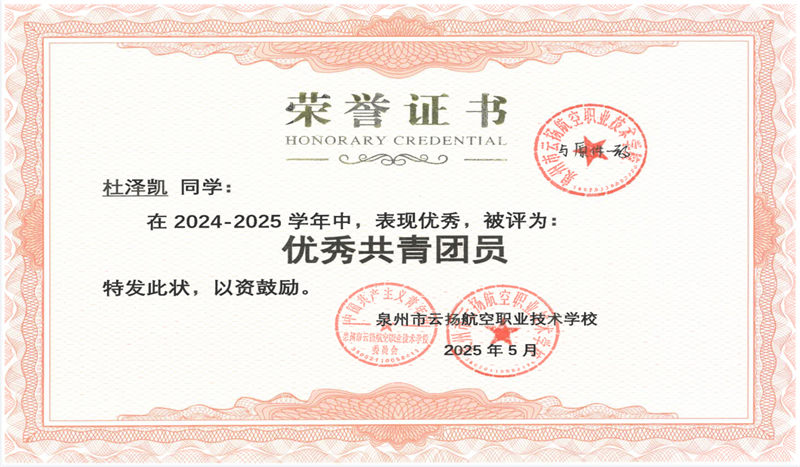 思想淬煉,初心如磐:積極向上,榮獲2024-2025學(xué)年“優(yōu)秀共青團(tuán)員”稱號(hào),以青春之力踐行責(zé)任擔(dān)當(dāng)。