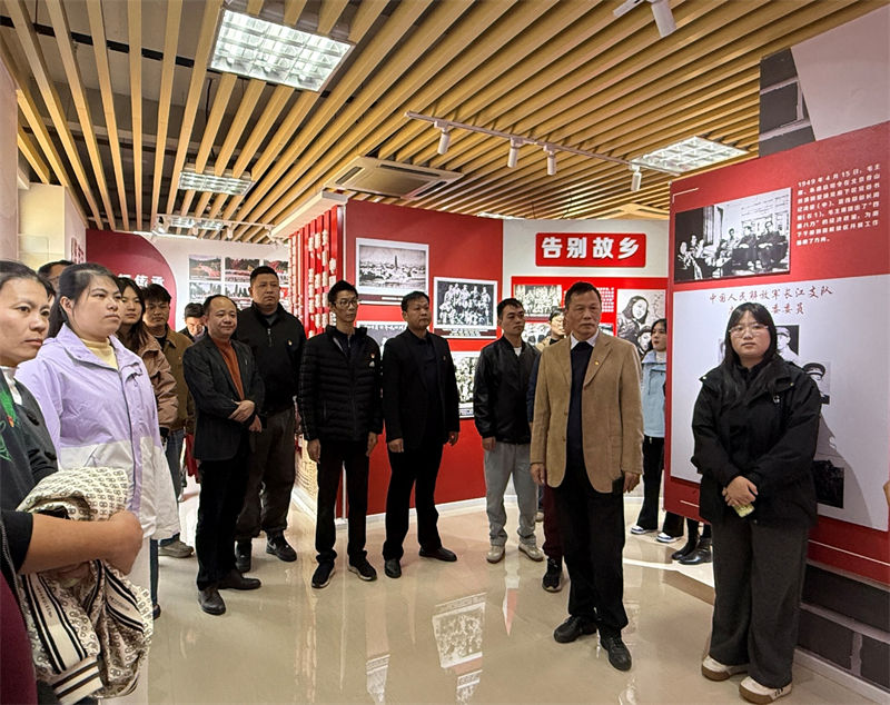 展廳內(nèi),泛黃的文獻、珍貴的實物,將那段烽火歲月具象為可觸可感的記憶。黨員同志們駐足凝視,仿佛聽見歷史的回響。面對鮮紅黨旗,在黨支部書記潘向東同志的領(lǐng)誓下,全體黨員重溫入黨誓詞,堅定有力的誓言在紀念園上空回蕩,詮釋著教育工作者為黨育人、為國育才的初心使命。