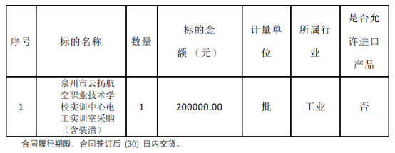 1.項目名稱:泉州市云揚航空職業(yè)技術學校實訓中心電工實訓室采購(含裝潢)