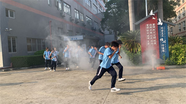 下午3時,消防警報劃破長空,橙色煙霧模擬火場環(huán)境迅速彌漫樓道。在軍訓(xùn)教官和學(xué)工處老師的聯(lián)合組織下,同學(xué)們迅速用濕毛巾捂住口鼻,低姿彎腰沿墻前行,按照預(yù)定疏散路線快速向開闊地帶轉(zhuǎn)移。整個過程中,同學(xué)們沉著冷靜、動作規(guī)范,快速有序疏散,安全抵達集結(jié)區(qū)域,展現(xiàn)出良好的紀(jì)律意識和協(xié)作能力。