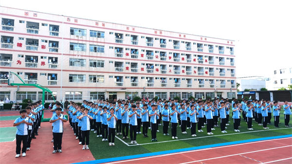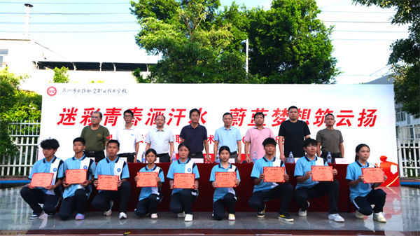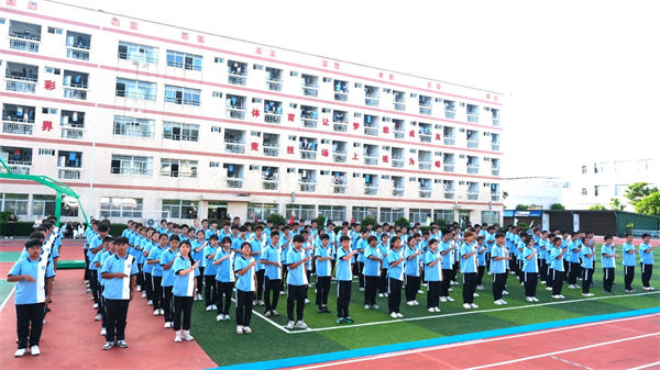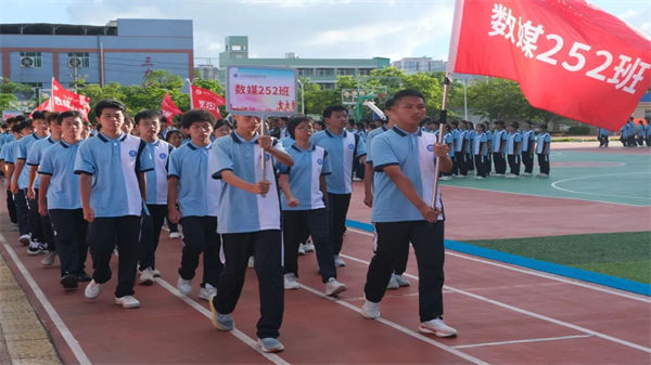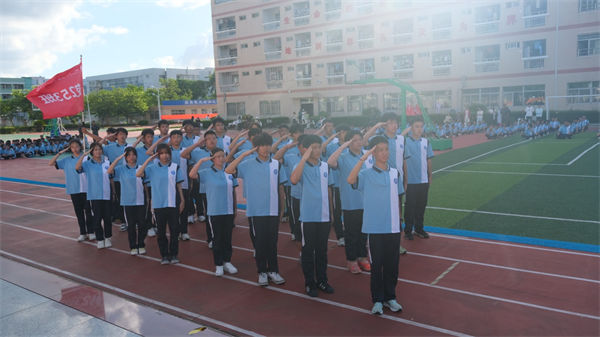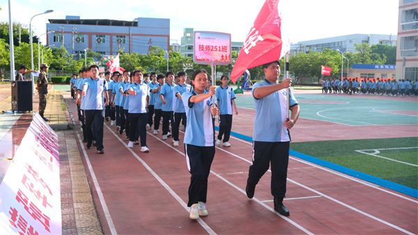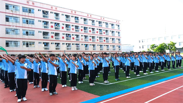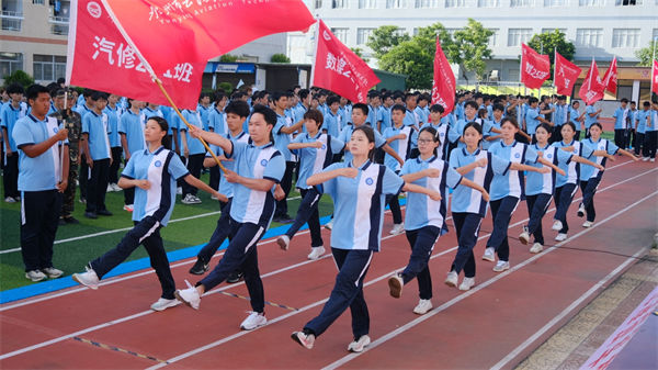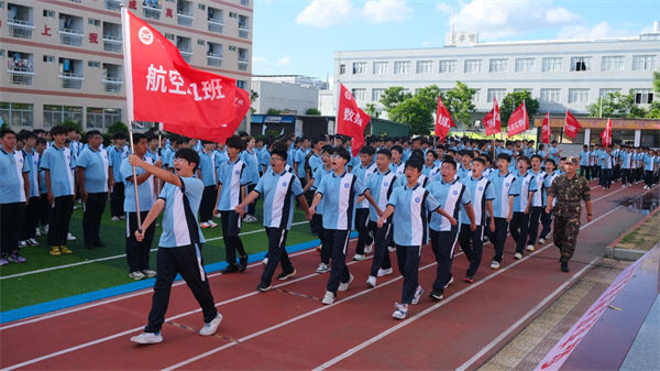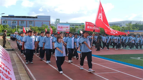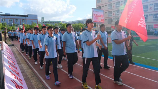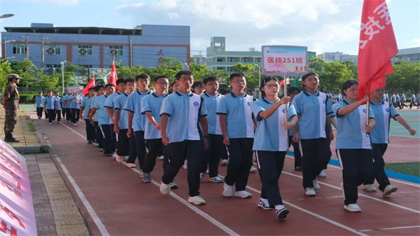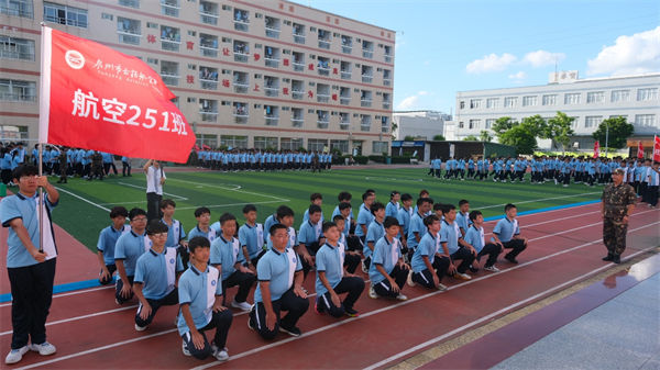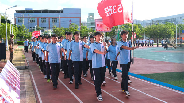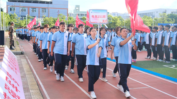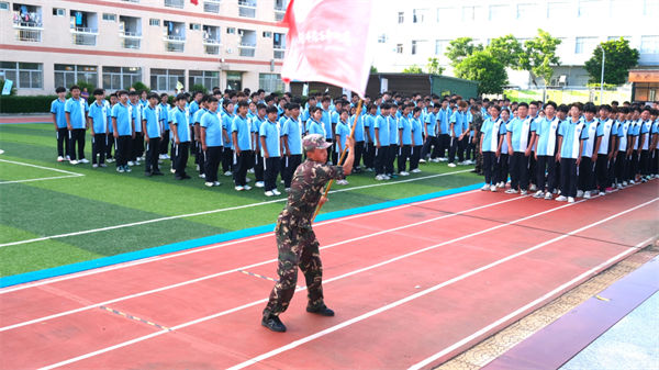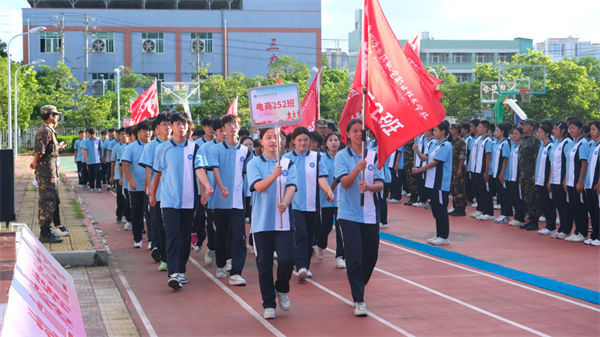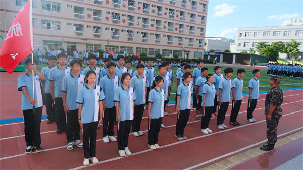 校領(lǐng)導、教官、全體教職工及2025級同學齊聚訓練場