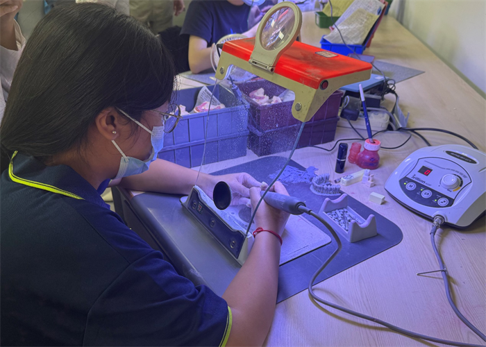 我校作為泉州市首個(gè)“產(chǎn)教融合應(yīng)用型特色?!?,始終堅(jiān)持“產(chǎn)教融合、校企合作”理念,積極創(chuàng)新技能人才培養(yǎng)模式。港灣校區(qū)口腔義齒制造專業(yè)與泉州超維口腔醫(yī)療公司合作開設(shè)“訂單班”人才培養(yǎng)模式,著力培養(yǎng)具備口腔修復(fù)技術(shù)及義齒數(shù)字化設(shè)計(jì)與制作能力的應(yīng)用型人才,畢業(yè)生可勝任牙體掃描、數(shù)字化建模、3D打印與數(shù)控精密加工等崗位。