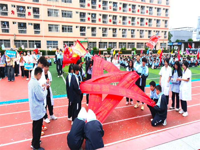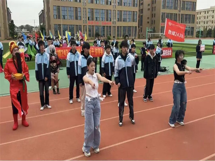 有的班級(jí)用紅布翻飛拼出五星紅旗,展現(xiàn)云揚(yáng)學(xué)子的愛國情懷;有的班級(jí)組成火箭模型方陣高喊“科技強(qiáng)國”,讓未來感直接拉滿;有的班級(jí)結(jié)合專業(yè)特色,在班級(jí)用舞蹈跳出運(yùn)動(dòng)熱潮;有的班級(jí)舉著自制標(biāo)語牌霸氣表白,將文明素養(yǎng)與運(yùn)動(dòng)熱情完美融合,成為賽場(chǎng)上一道亮麗的風(fēng)景線。