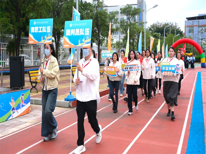 當(dāng)熟悉的身影邁著沉穩(wěn)的步伐入場(chǎng),全場(chǎng)響起了熱烈的歡呼——這是教職工方陣!他們平日里是傳道授業(yè)的園丁,此刻是活力滿滿的運(yùn)動(dòng)愛好者。筆挺的身姿、堅(jiān)毅的眼神,每一步都鏗鏘有力,既飽含對(duì)運(yùn)動(dòng)的熱忱,更彰顯對(duì)學(xué)子的榜樣力量??粗蠋焸兊娘L(fēng)采,學(xué)子們紛紛舉起手機(jī)拍攝,這或許就是“言傳身教”最生動(dòng)的詮釋!