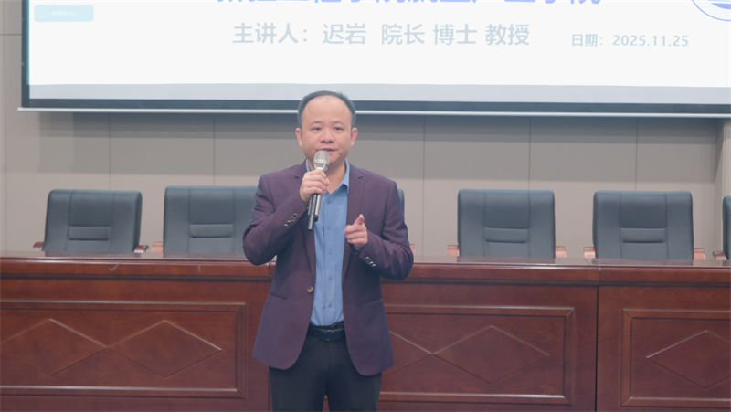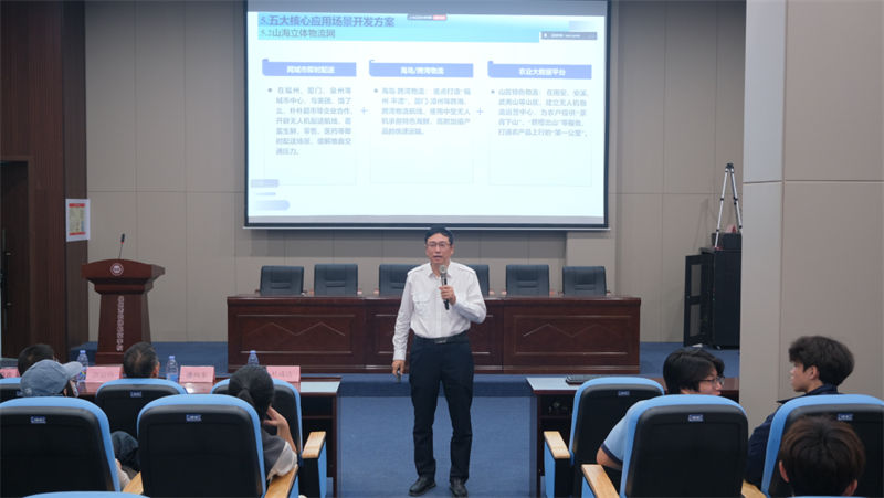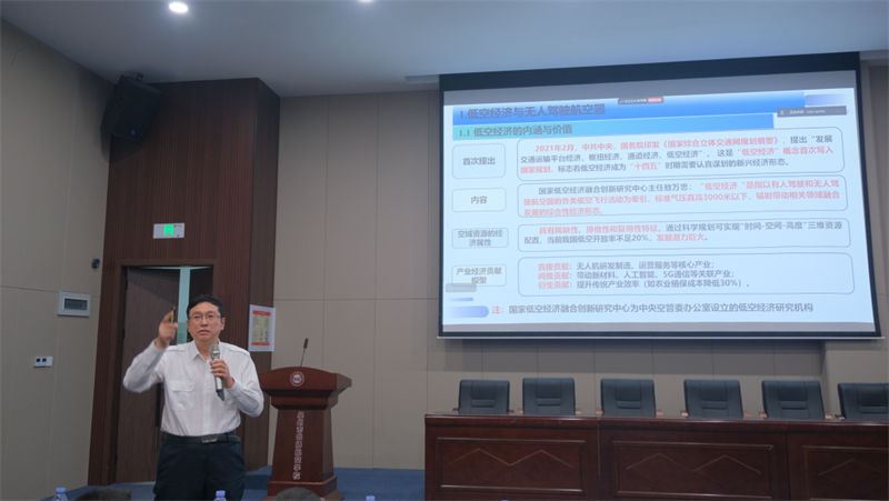 在師生熱烈的掌聲中,遲巖院長開始了主題講座。他結(jié)合云揚(yáng)集團(tuán)在航空領(lǐng)域的實(shí)踐積淀,從政策演進(jìn)、技術(shù)突破與場景應(yīng)用三大維度展開分享。在低空無人機(jī)發(fā)展板塊,他深入解讀了國家低空空域開放試點(diǎn)政策帶來的行業(yè)機(jī)遇,強(qiáng)調(diào)航空制造技術(shù)升級(jí)對(duì)無人機(jī)性能提升的核心支撐作用。